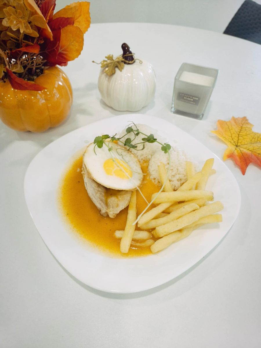 Bravčový steak s volským okom 120g, ryža, hranolky, šalát