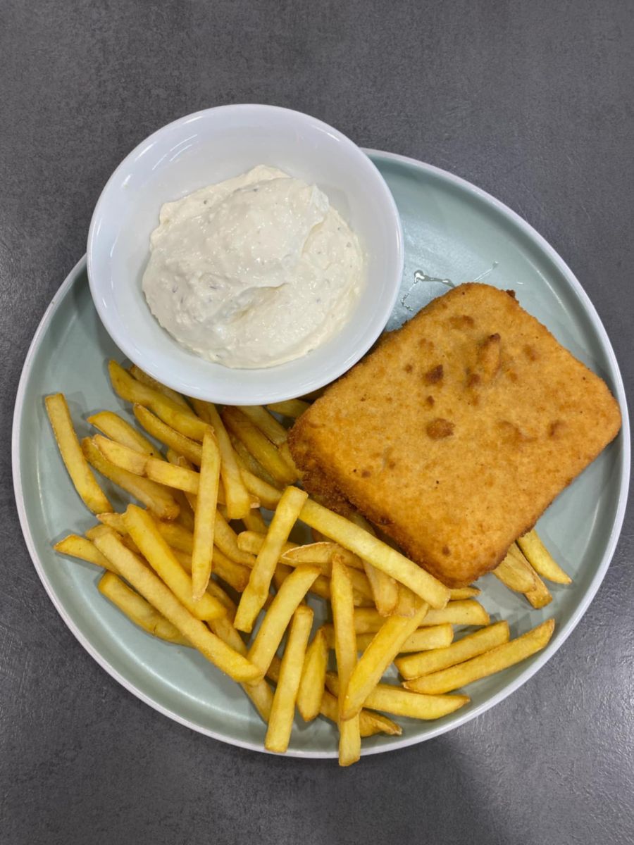 Vyprážaný syr 120g, hranolky, tatárska omáčka