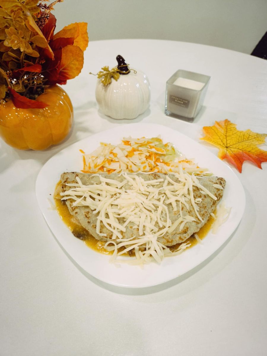 Šarišská kuracia pochúťka v zemiakovej placke, šalát